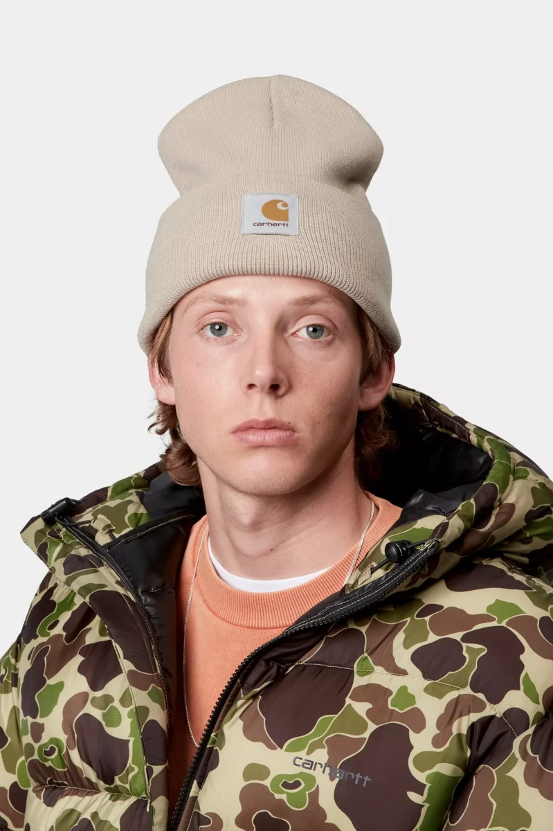 El Acrylic Watch Hat es una de las piezas básicas de Carhartt WIP, confeccionado en un cálido tejido acrílico, con canalé elástico que asegura un ajuste cómodo y perfecto para cada persona. Incluye etiqueta Carhartt WIP tejida en la parte delantera.