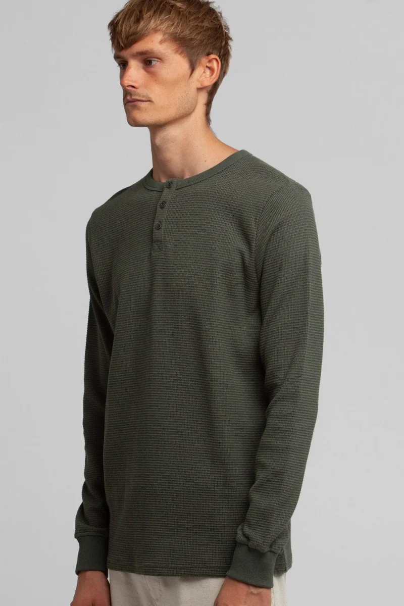 La prenda de peso medio Apartment Waffle Knit es un equipo estilo henley cortado de una fabricación clásica de colores versátiles para todos los días, hecho para soportar los elementos de invierno.