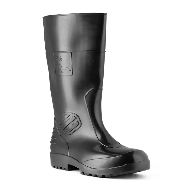 Fabricada en PVC especial, es una bota ligera, flexible y duradera, ideal para largas jornadas de trabajo en las que la comodidad es fundamental. La suela antideslizante, diseñada con estrías que mejoran el agarre en superficies resbaladizas, y su sistema antiestático, protegen frente a descargas eléctricas y caídas en suelos mojados o grasientos. Además, la bota incluye una pestaña trasera que facilita el descalzado, un protector estriado en los tobillos para mayor durabilidad y un sistema de sujeción que mejora el agarre del pantalón, proporcionando una mayor practicidad y seguridad durante el trabajo.