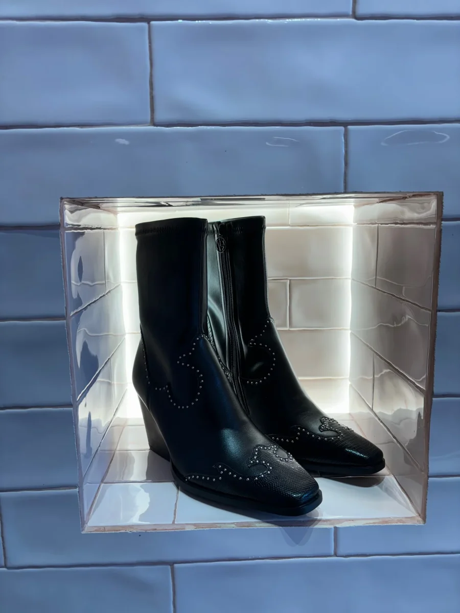 Botín de estilo cowboy que presenta unos mini remaches en la parte superior del corte, y en la punta.