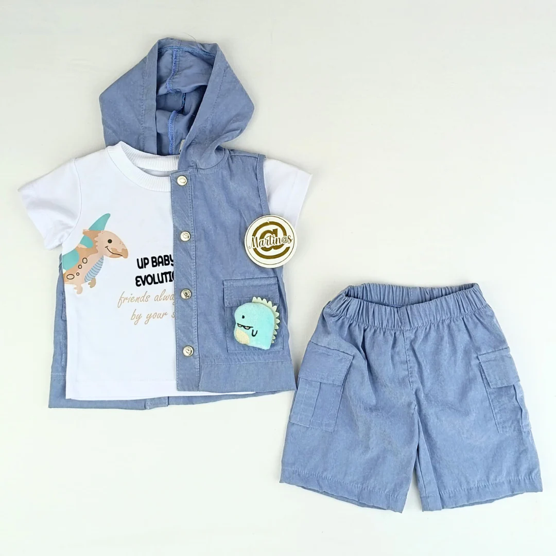 ¡Aventuras salvajes para los más pequeños! Este conjunto irresistible combina una suave camiseta de algodón con un estampado de adorables animalitos, con un toque clásico. Perfecto para explorar el mundo con estilo y comodidad