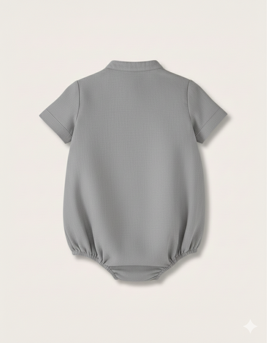 Este pelele tipo camisa es perfecto para el verano. Tiene un tono verde salvia muy bonito y elegante.