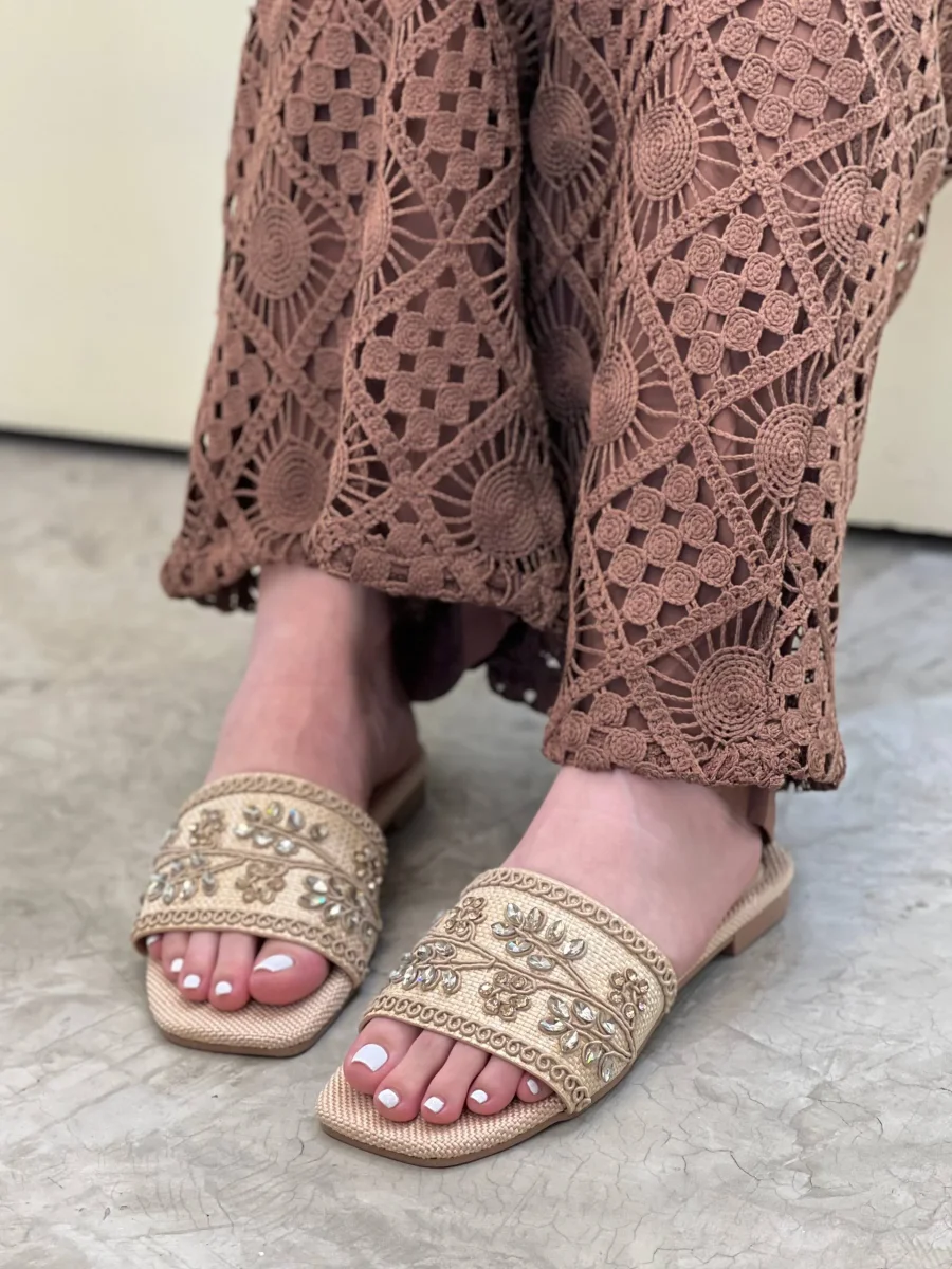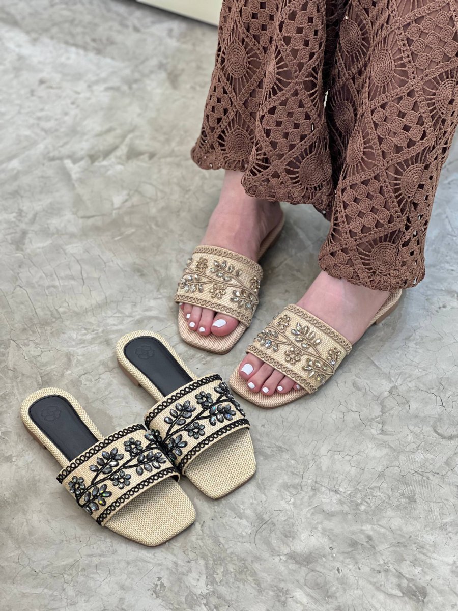 Sandalia plana de estilo moderno con diseño de doble tira que brinda mayor ajuste y comodidad al pie. Su detalle de cadena metálica en la parte superior aporta un toque elegante y sofisticado, ideal para elevar cualquier look.