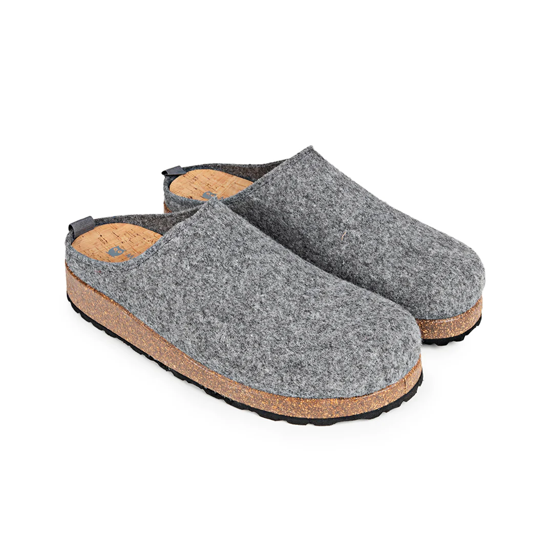 Realizadas en fieltro reciclado, un tejido que ayuda a mantener los pies cálidos con suavidad y comodidad. Este material reciclado contribuye a la sostenibilidad del planeta con un importante ahorro de agua, emisiones de CO2 y energía.