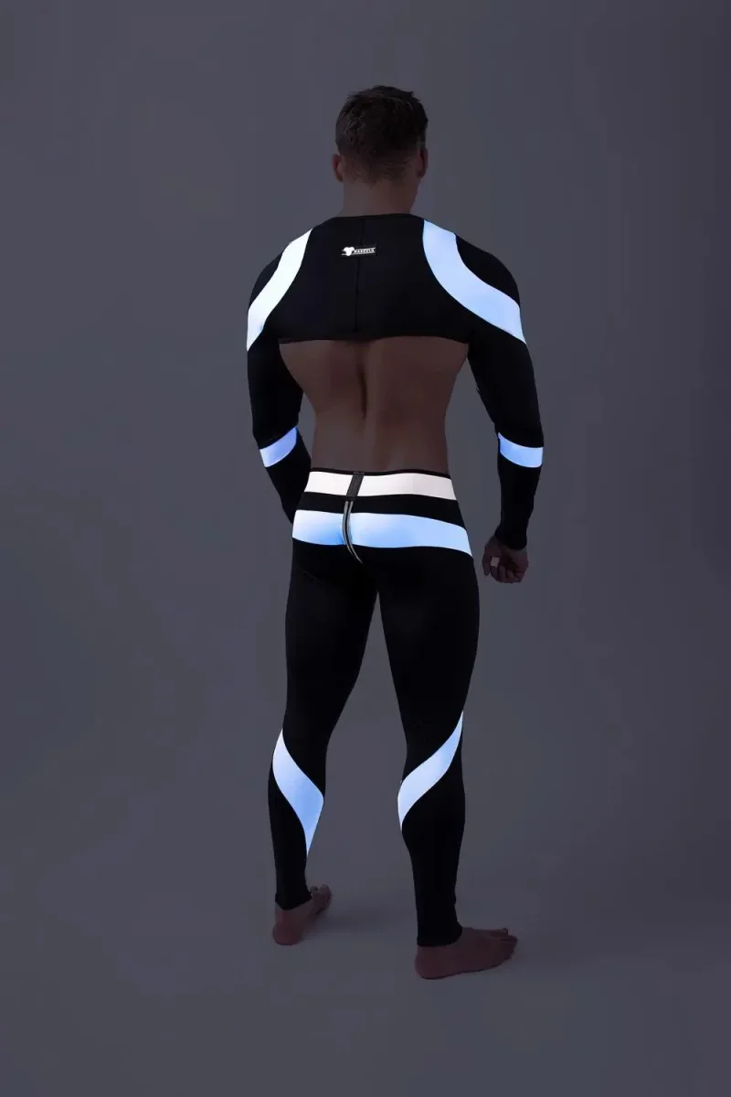 - Neon White Glow: As a core piece of the «UV-Glowing Neon» series, the White-Neon spandex elements are engineered to glow intensely under ultraviolet blacklight. This ensures you remain the focal point of any rave, circuit party, or club environment.