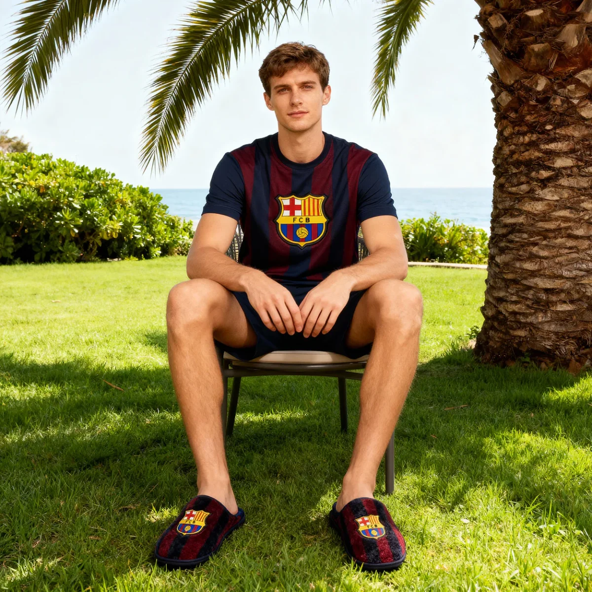 Zapatillas de casa Barcelona Clásicas para toda la familia, hombre, mujer y niño. Sus características rayas de temporadas pasadas se trasladan a nuestras zapatillas de tejido suave, colores emblemáticos y escudo en grande estampado en la pala. Ideales para los más nostálgicos.
