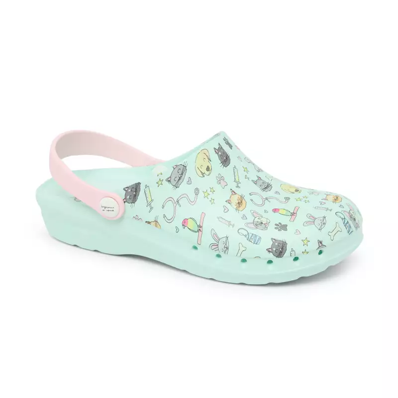 – Disponibles en estampados TCAE, Aquamarina, Rosa y Animalitos, ofrecen una alternativa divertida y única para el calzado sanitario.